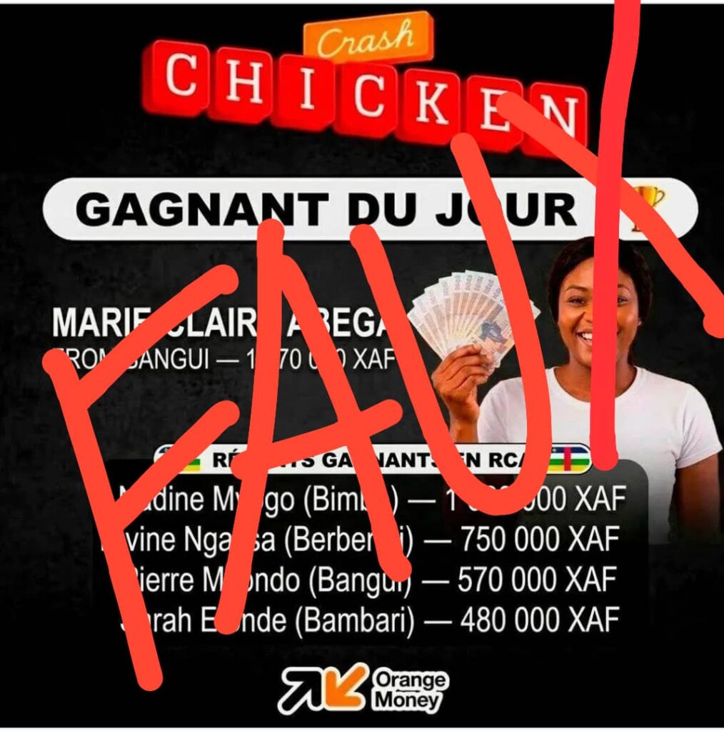 nouvelles kolokoto société vérification des faits Centrafrique : Crash Chicken, une fausse opportunité en ligne qui piège des internautes à Bangui cherubin 7 avril 2026 0 kolokoto Politique et Gouvernance Sécurité et Conflits société vérification des faits Centrafrique : quand le silence règne face au trafic d’organes humains et la disparition tragique à Bayanga cherubin 7 avril 2026 0 Économie et Développement kolokoto société Centrafrique : La FAFECA dresse un bilan positif du SANEF et trace de nouvelles perspectives cherubin 4 avril 2026 0 Économie et Développement kolokoto société Centrafrique : l’OFCA forme les acteurs de la société civile sur le genre et la paix cherubin 4 avril 2026 0 kolokoto Politique et Gouvernance société Femmes centrafricaines en colère : justice exigée après les propos de Giles Lonel Ngouandjika cherubin 4 avril 2026 0 kolokoto Santé et Éducation société Sous le soleil et la pluie : le combat quotidien des enfants Aka pour étudier à l’école cherubin 2 avril 2026 0 kolokoto kolokoto société vérification des faits Centrafrique : Crash Chicken, une fausse opportunité en ligne qui piège des internautes à Bangui cherubin 7 avril 2026 0 kolokoto Politique et Gouvernance Sécurité et Conflits société vérification des faits Centrafrique : quand le silence règne face au trafic d’organes humains et la disparition tragique à Bayanga cherubin 7 avril 2026 0 Économie et Développement kolokoto société Centrafrique : La FAFECA dresse un bilan positif du SANEF et trace de nouvelles perspectives cherubin 4 avril 2026 0 Économie et Développement kolokoto société Centrafrique : l’OFCA forme les acteurs de la société civile sur le genre et la paix cherubin 4 avril 2026 0 kolokoto Politique et Gouvernance société Femmes centrafricaines en colère : justice exigée après les propos de Giles Lonel Ngouandjika cherubin 4 avril 2026 0