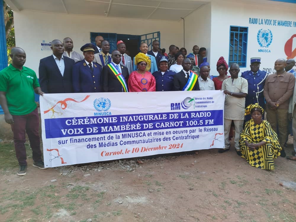 En date du 10 décembre 2024, le Réseau des médias communautaires de Centrafrique (RMCC) a officiellement lancé la première radio communautaire, « La Voix de Mambere », dans la sous-préfecture de Carnot, marquant un coup d’éclat dans la préfecture de Mambere. Ce projet, soutenu financièrement par la Mission multidimensionnelle intégrée des Nations unies pour la stabilisation en Centrafrique (MINUSCA) est en parfaite adhérence à la politique de:« Au moins une région, une radio communautaire » du RMCC. Ce nouveau canal de transmission à orientation communautaire émet sur la fréquence de modulation 100.5 FM.